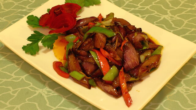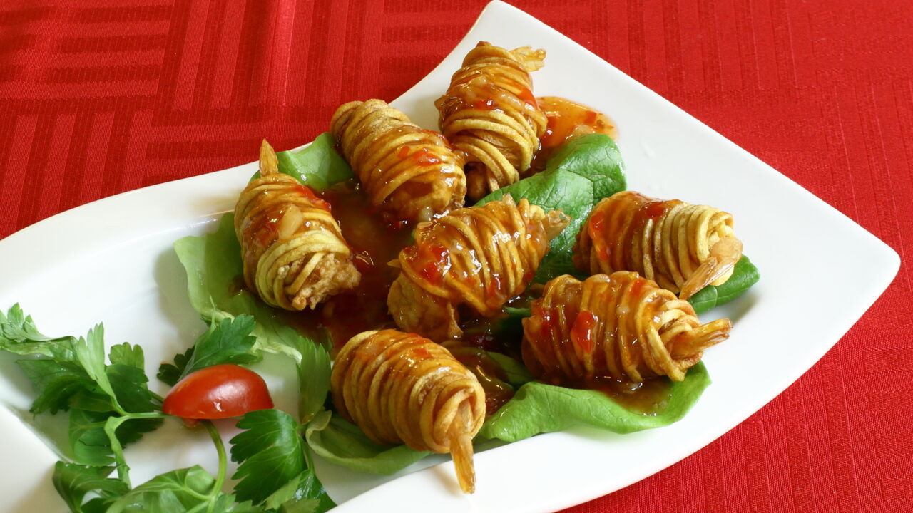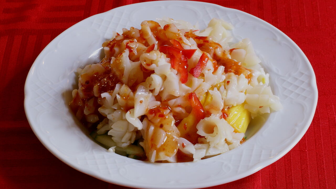 Garnelen in Tee sind eine Spezialität unseres Restaurants, sie werden mit Longjing-Tee aus Hangzhou, China, zubereitet.